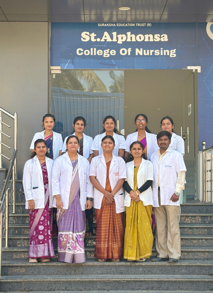 I feel great pleasure in extending you a very warm welcome on behalf of the Board of Governors as well as the whole St Alphonso family to the new aspirants seeking admission in this institute, for structuring their career in Nursing. We have clearly laid down our vision, mission and values and efforts shall be made to utilize the infrastructural facilities and intellectual capital to achieve these goals and values. It shall be our endeavour to prepare nurses with a sound educational programme so that they may serve the institutions, patients with extra care and meet the basic health needs of the community.